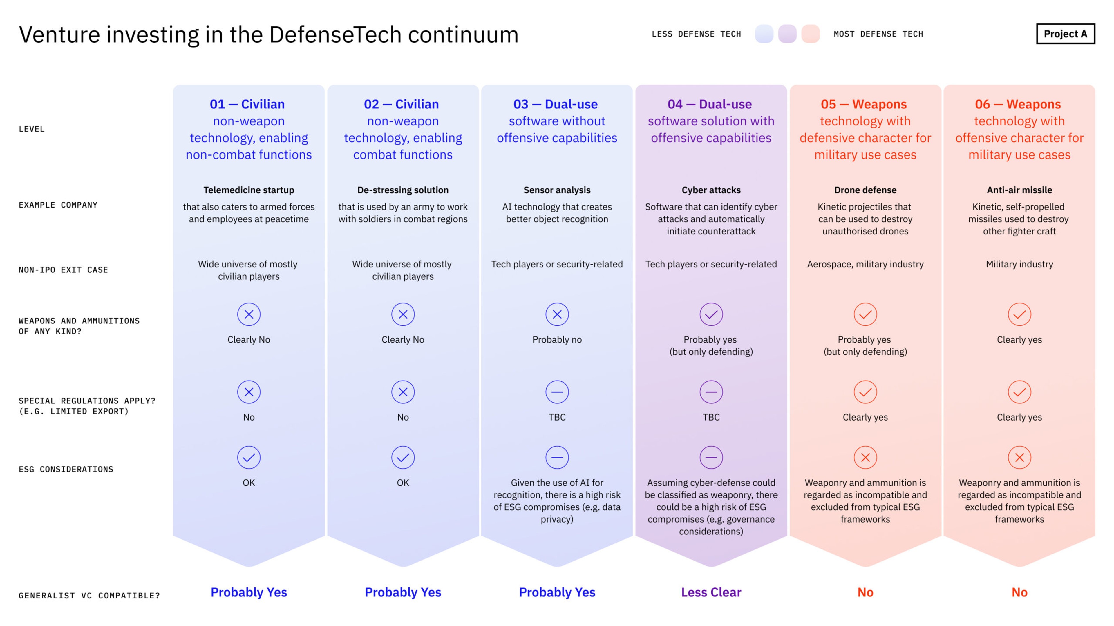 The parameters for looking at investing in such companies are 1) the technology involved, 2) its primary users, 3) what the exit scenario is, 4) whether it deals with weapons or ammunition, 5) if special laws or export regulations apply, and 6) what ESG considerations have to be taken into account. Let’s look at some examples:
